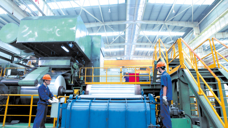 (晟通科技是我国唯一能够规模生产航天军工所需“低硅低铁”电解铝的企业。图为其生产车间。)