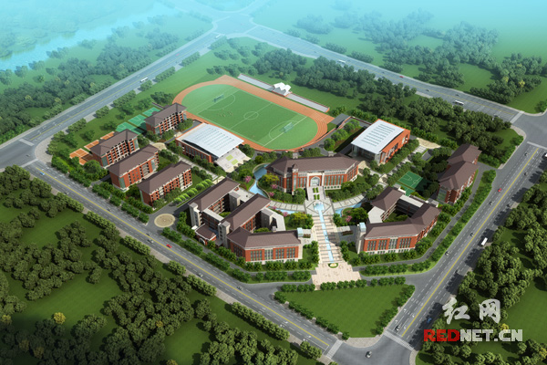 (长郡浏阳实验学校规划图。该学校已于9月开工建设,建成后将容纳小学、初中、高中学员共计2160人。)