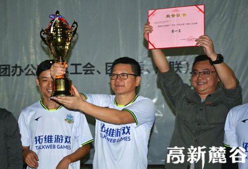红网综合讯 据高新麓谷报道(王昊辰)近日,长沙高新区2014年“中冶·中央公园”杯职工足球赛决赛在华自科技举行。副市长何寄华,市总工会党组副书记、副主席匡涛涛,高新区党工委书记罗社辉,党工委副书记黄德湘,党工委委员、总工会主席杨金林观看比赛并为获奖队伍颁奖。在率先进行的三四名决赛中,越山信息战胜了华速电力获得季军。随后,整个赛事来到了最高潮,拓维信息和振明教育为最后的冠军展开激烈争夺。