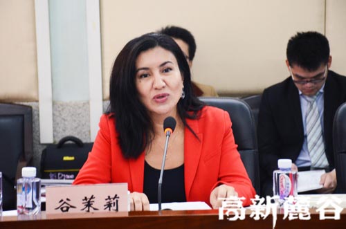 (10月22日,“选择美国”投资研讨会,美国驻广州总领事馆商务副领事谷茉莉致辞。邱旸摄)