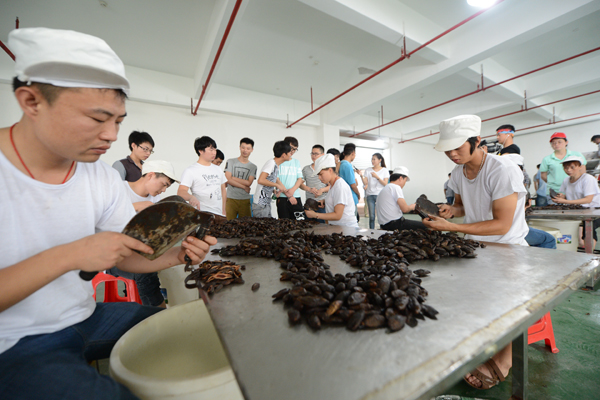 邓宏大说,今后他们还将研发槟榔去籽机、点卤机,打造槟榔生产全产业链机器,让槟榔生产由手工向机械化转变。
