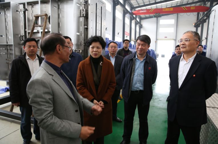 红网综合讯 据湘潭经开区消息 3月29日,湘潭市委副书记、市长张迎春一行来到湘潭经开区,就产业链龙头企业发展情况对园区企业泰富重装、宏大真空进行调研。张迎春希望,企业坚定发展信心、加快发展步伐、提升核心竞争力、扩大市场占有率,并充分发挥龙头企业作用,带动产业链实现更好发展。湘潭市副市长陈小山,湘潭经开区党工委副书记、管委会主任、湘潭综保区管委会主任黄韧等参加调研。