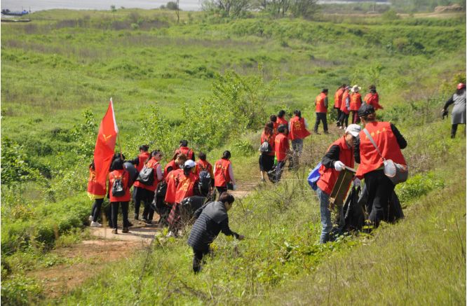 活动开始,百余名热情洋溢的志愿者走上了河堤。根据活动安排,本次活动的工作范围定为湘潭四大桥至双庆泵站的沿线河堤,全长约2公里左右,十个志愿小队的小队长分别带领着自己的队员迅速赶至所划分的责任区域开展“净滩”工作。