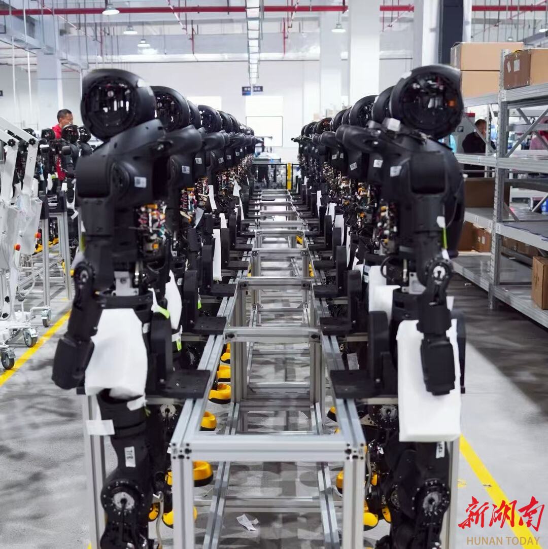在浏阳经开区,蓝思智能机器人永安园区内,一排排智能机器人整齐列阵,伴着灵动的节奏展示着高难度的舞蹈动作,科技范与未来感扑面而来。该项目2025年11月投产,占地400亩,厂房面积约18.9万平方米,具备年产1万台/套大型自动化设备和50万台具身智能机器人的能力。蓝思智能机器人(长沙)有限公司总经理孙宇垒介绍,项目全面建成达产后,预计年产值将突破20亿元,成为长沙智能制造产业版图上的新标杆。