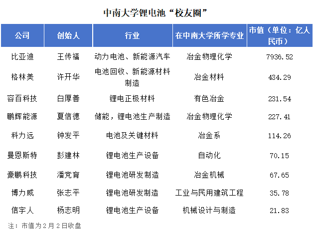 中南大学还有一些杰出校友的名字,如今常见于锂电池上市公司市值排行榜。