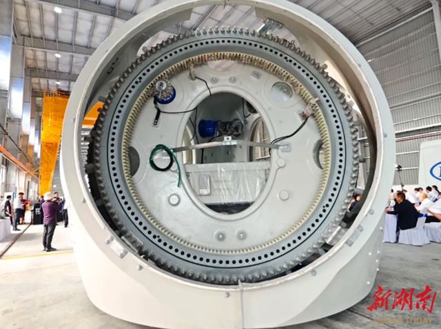 3月11日,怀化高新区鹤城片区,东方电气(怀化)风电装备制造基地一派繁忙,工人正在组装风力发电机主机,气动螺丝刀拧螺丝的“突突”声不断传来。