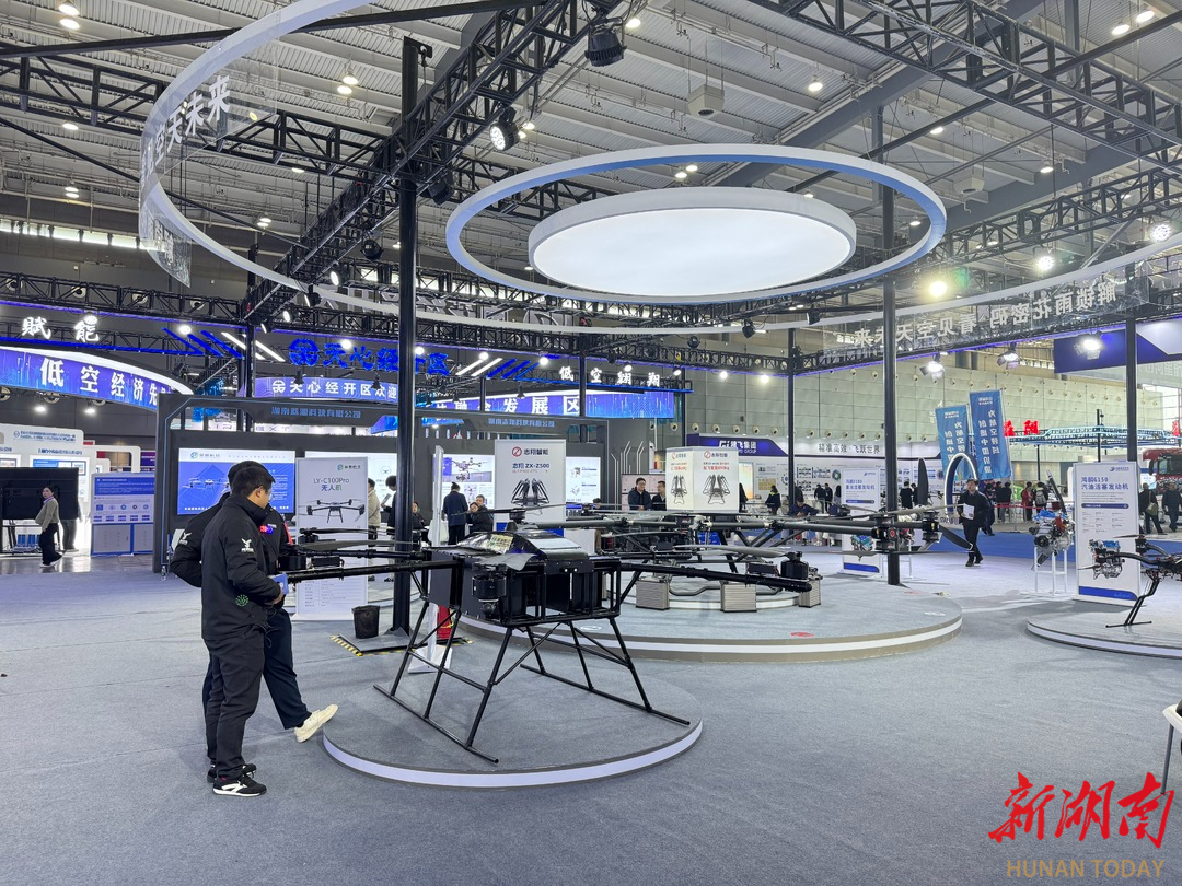 在湖南蓝源科技有限公司展台,LY多旋翼无人机展现出“六边形战士”的全面性能。“这款无人机能实现垂直起降,无需跑道和助飞设备。”蓝源科技联合创始人欧阳宸介绍,产品既能用于偏远山区、景区的物资运输,也可用于城镇、乡村的快递配送等等。